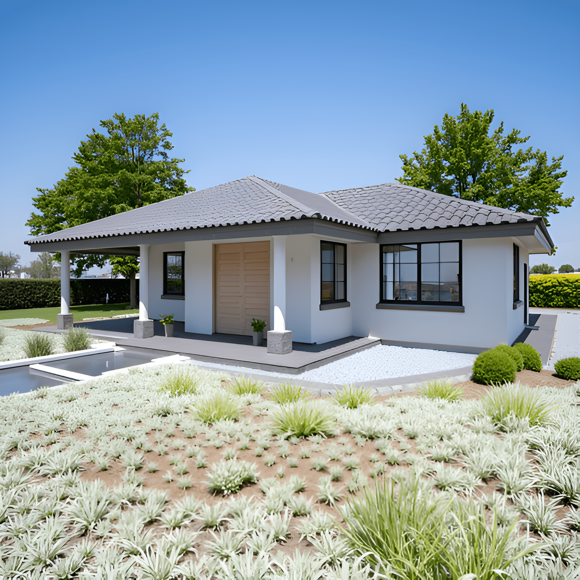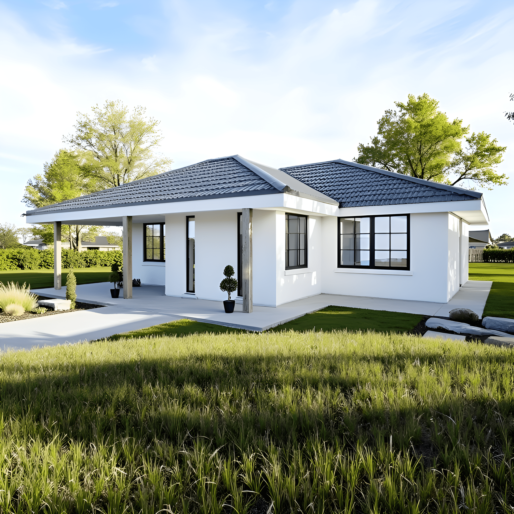 El precio comprende exclusivamente solo al area de construccion de la casa, y contemplando un terreno plano, para otro tipo de terreno con pendiente o inclinacion se evaluaria el tipo de cimentacion adicional a realizar.