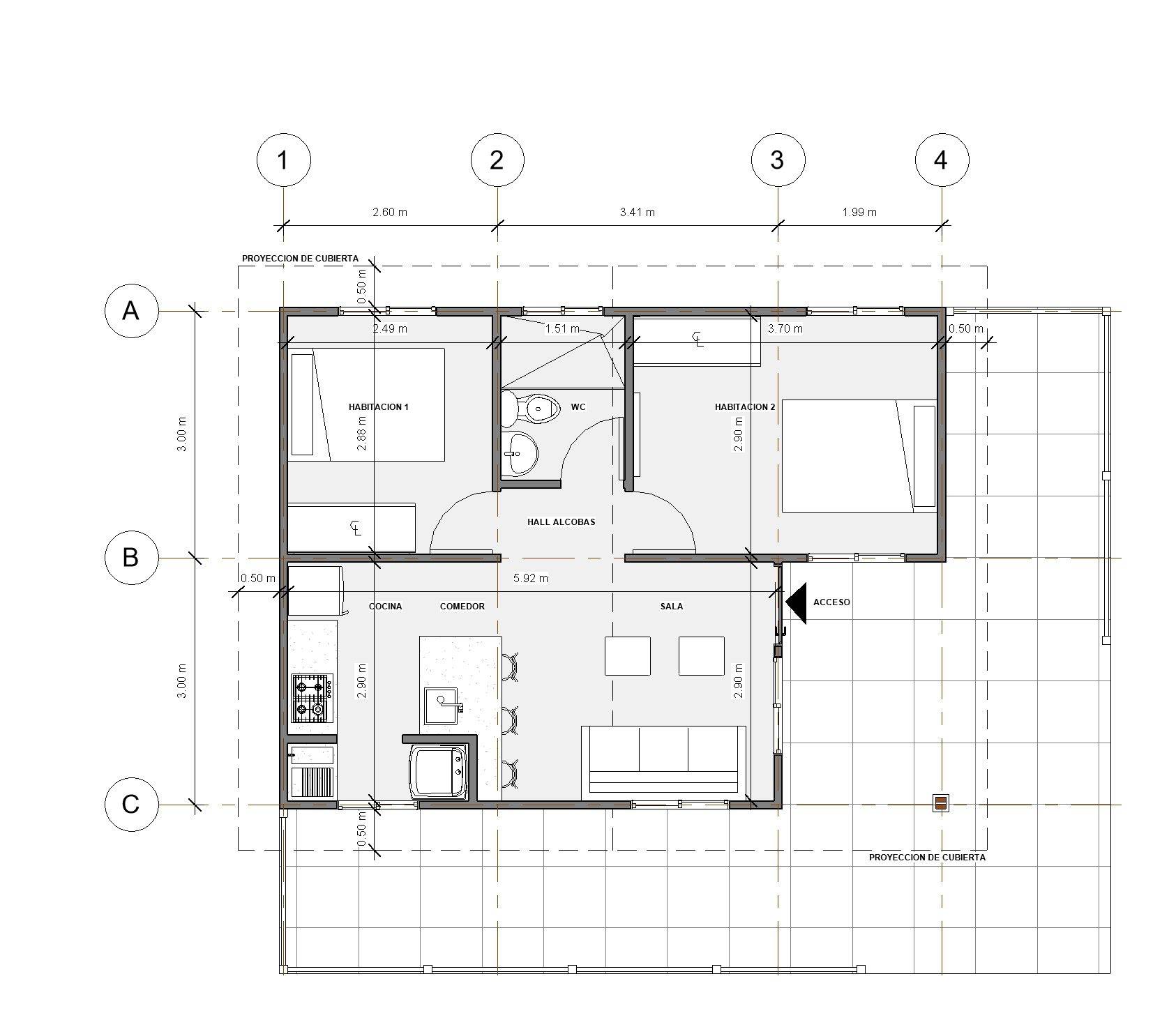 Extraordinaria casa basica tipo Campestre clasico se ajusta a los usos basicos, especial para familia pequeña, recien casada. jubilados o personas mayores. Casa adecuada para sitios semiurbanos .Un lugar donde su impacto en el planeta se minimiza.