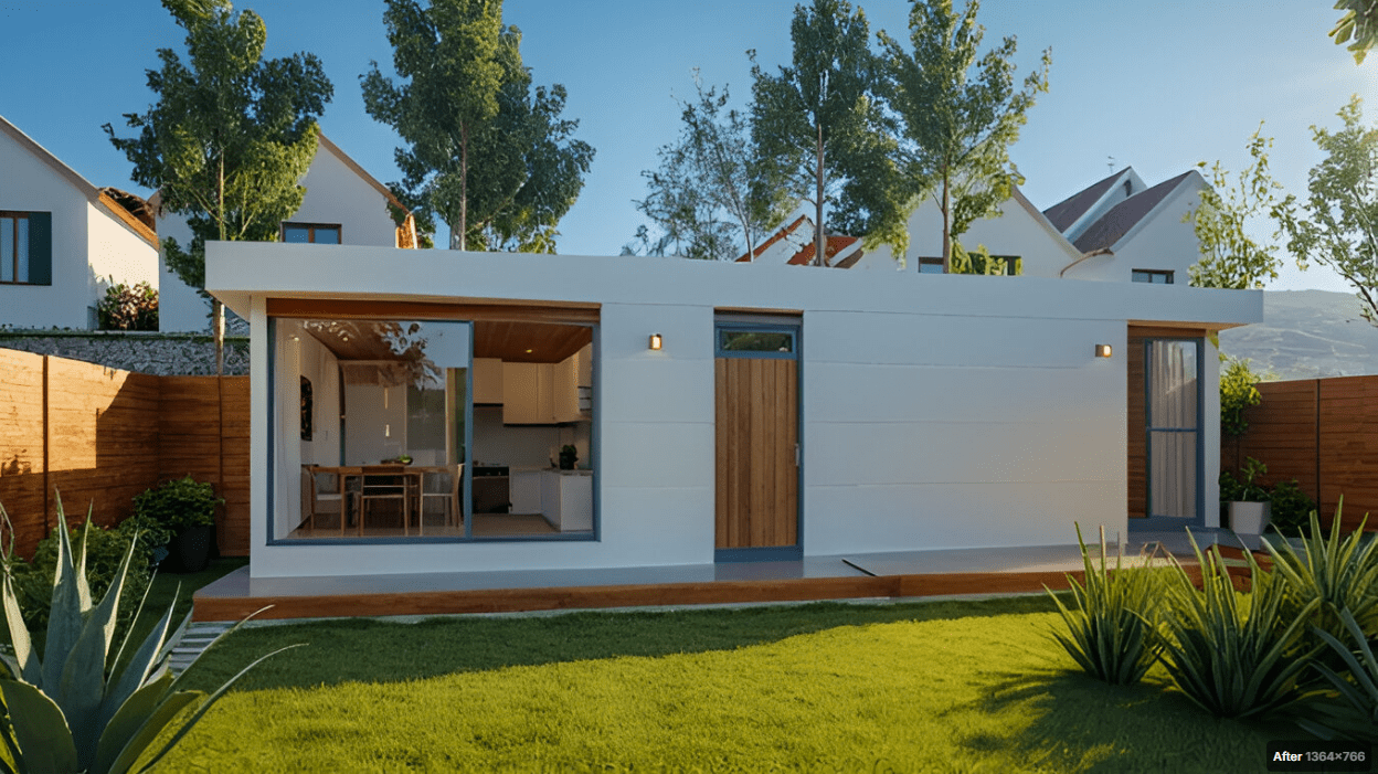 La Casa Modular KR20 contiene: 2 Habitaciones, 2 baños, cocina, Sala, Comedor, todo esto en solo 34 m2 construidos.